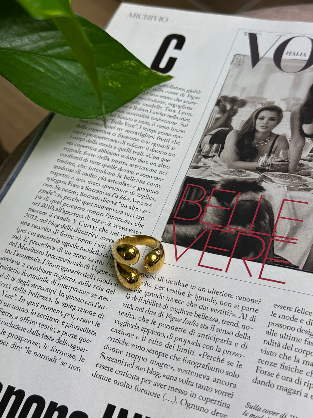 Anello a gocce con swarowski, regolabile. Colore oro.