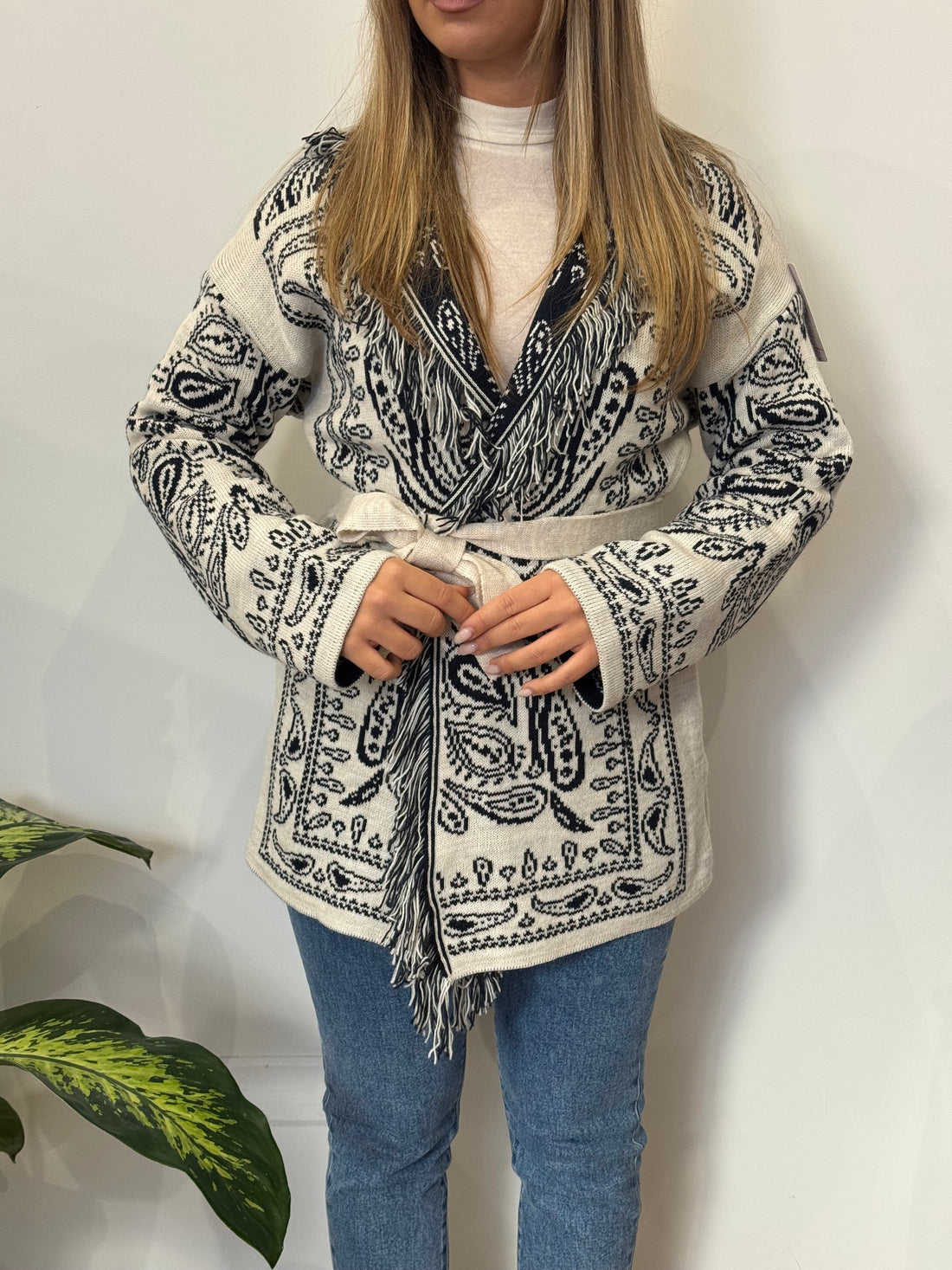 Cardigan a kimono con fantasia bandana. Versatile, morbido e caldo.