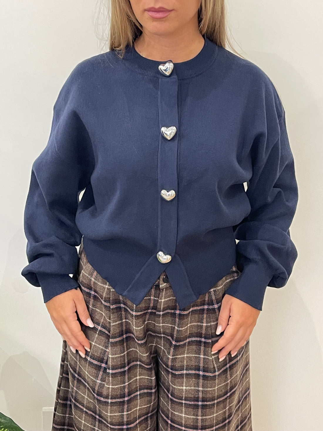 Cardigan con dettaglio dei bottoni a cuore in argento. Manica a sbuffo