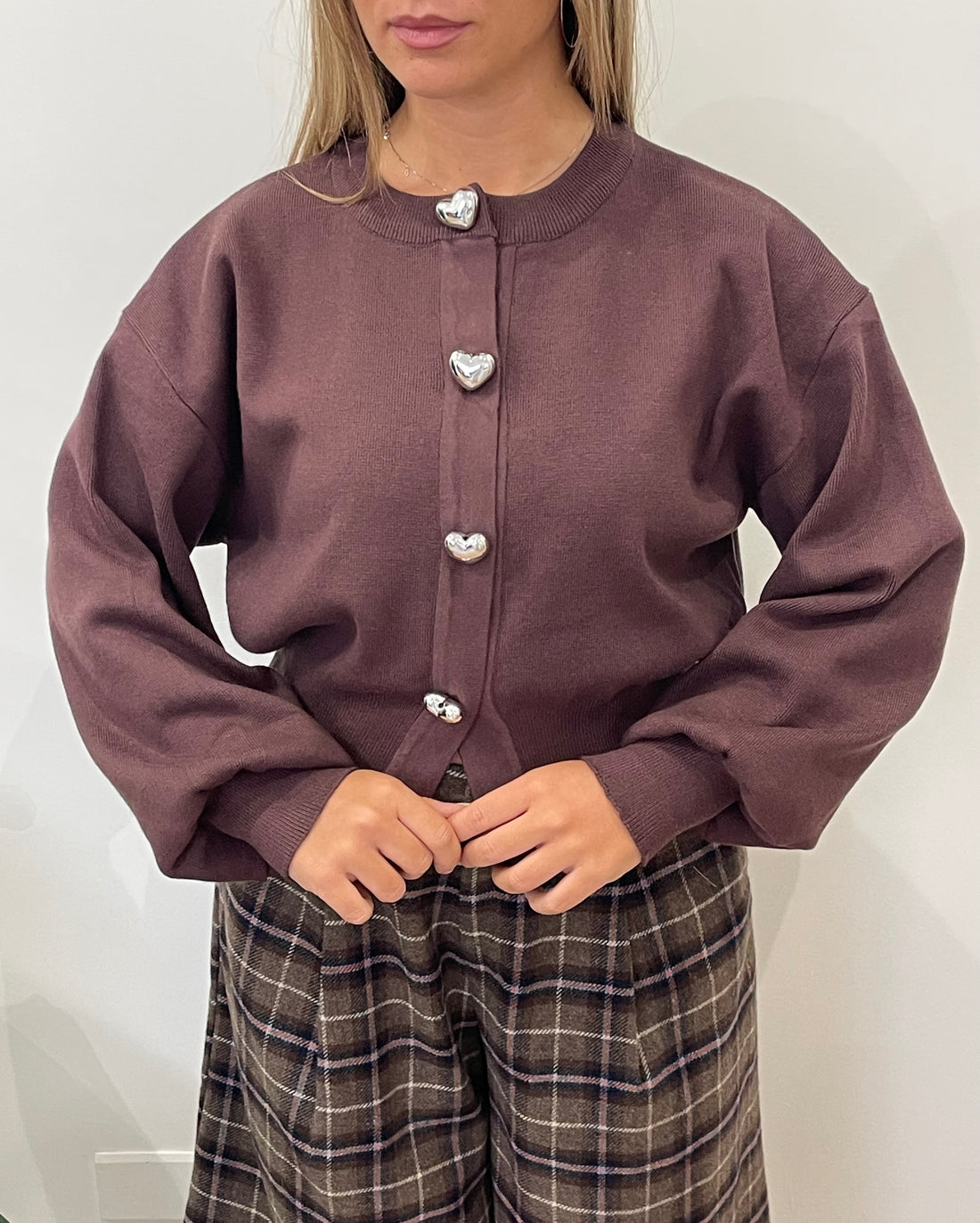 Cardigan con dettaglio dei bottoni a cuore in argento. Manica a sbuffo.