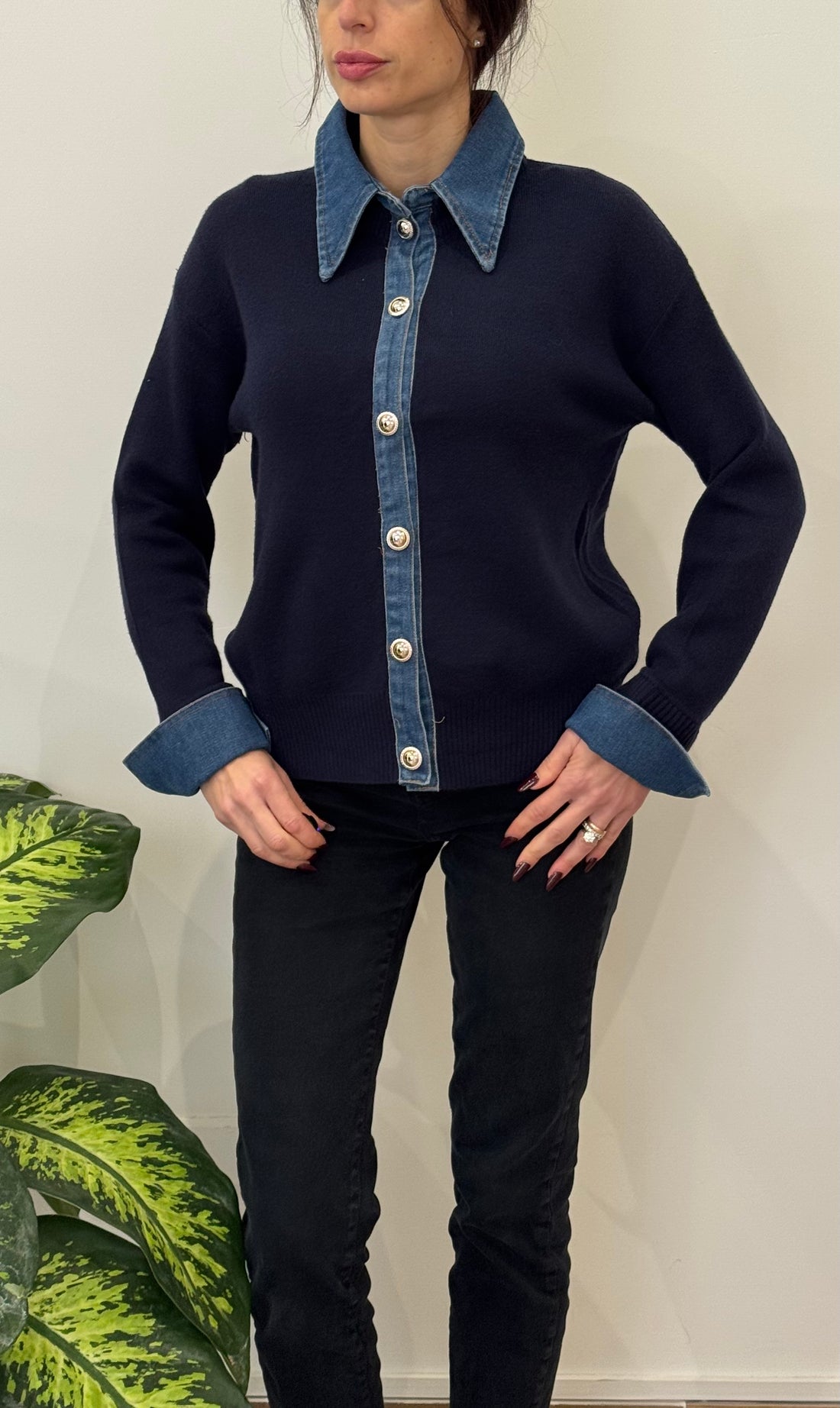 Maglione a polo con colletto e polsini in contrasto di colore.