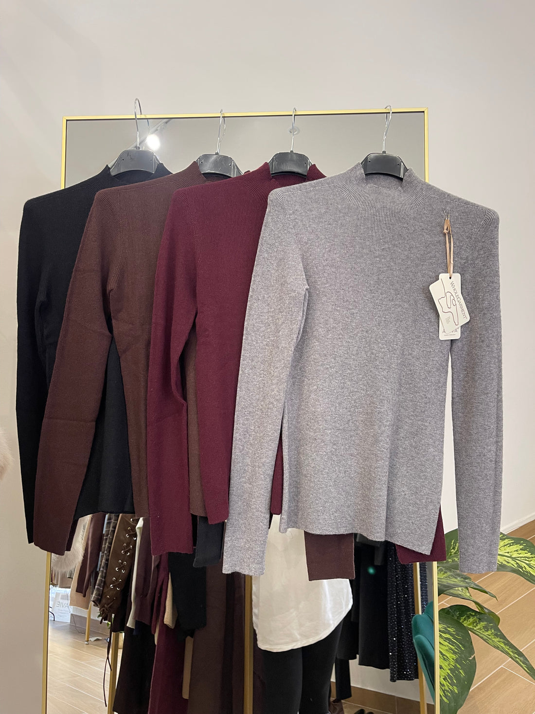 Maglione a polo. Caldo e morbido a righe con bottoncini.