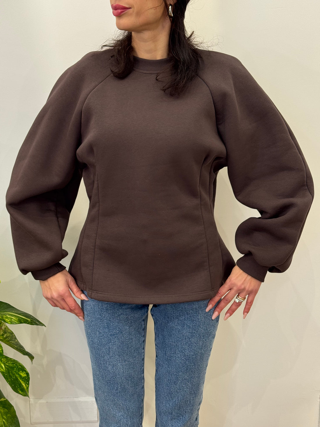 Felpa avvitata e con il dettaglio della manica a palloncino