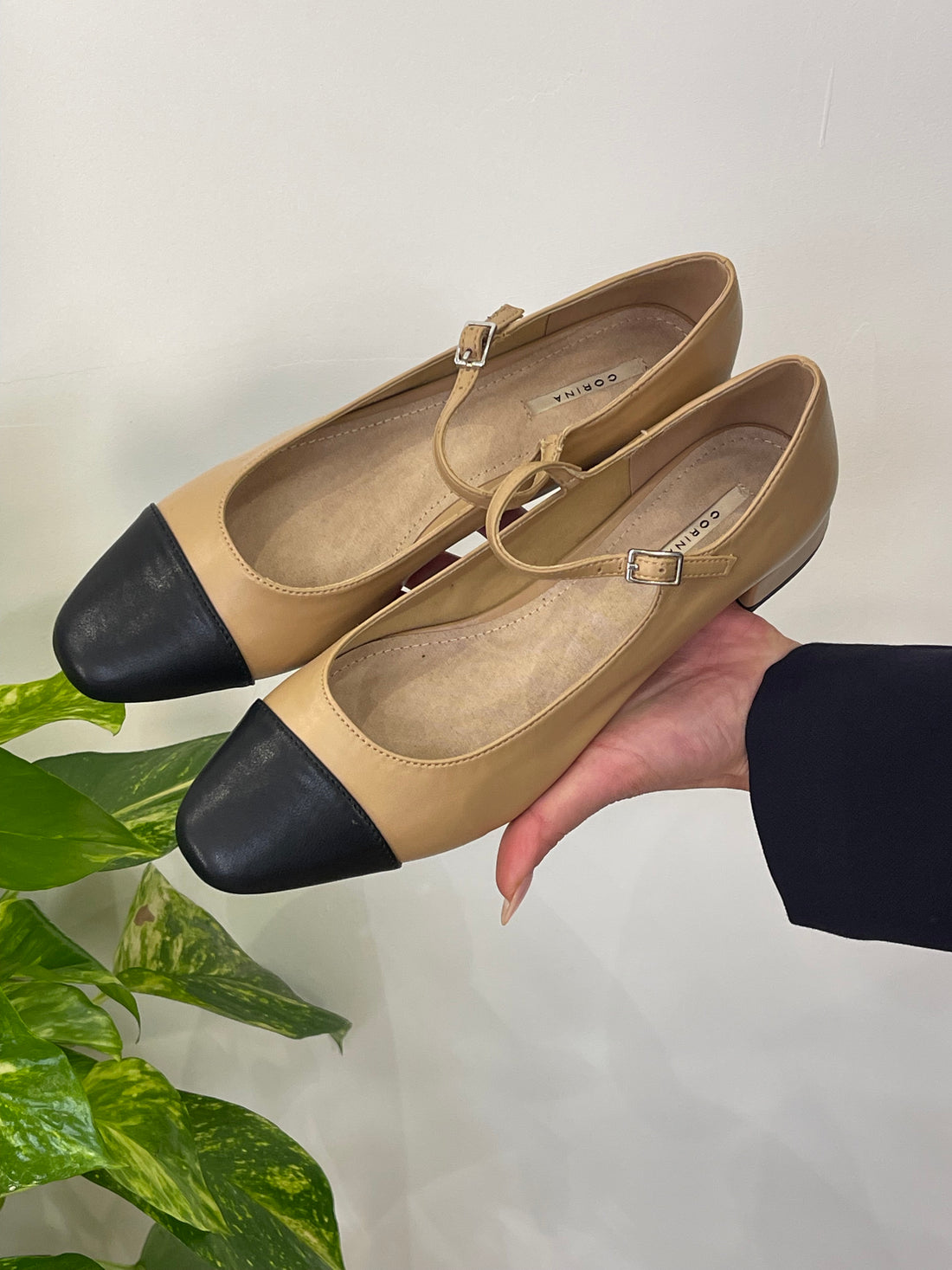 Ballerina modello Chanel. Con particolarità della fibbietta e punta nera.