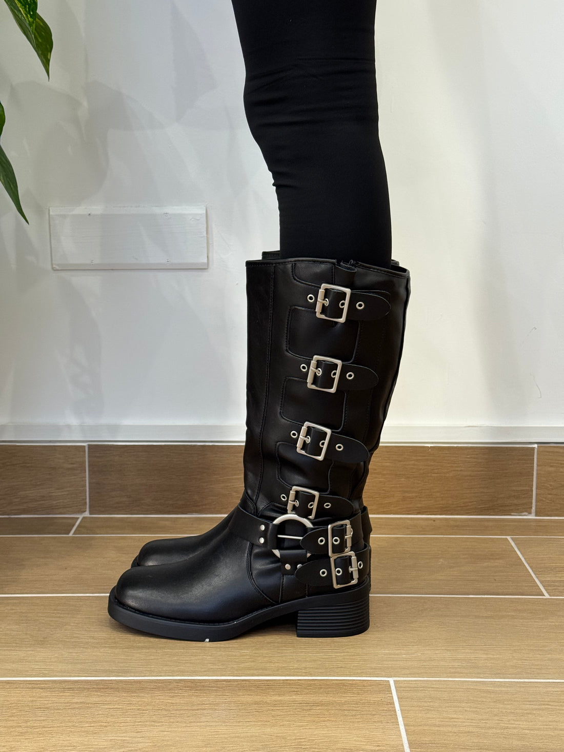 Ballerine in ecopelle con borchie a brillantino e cinturino.