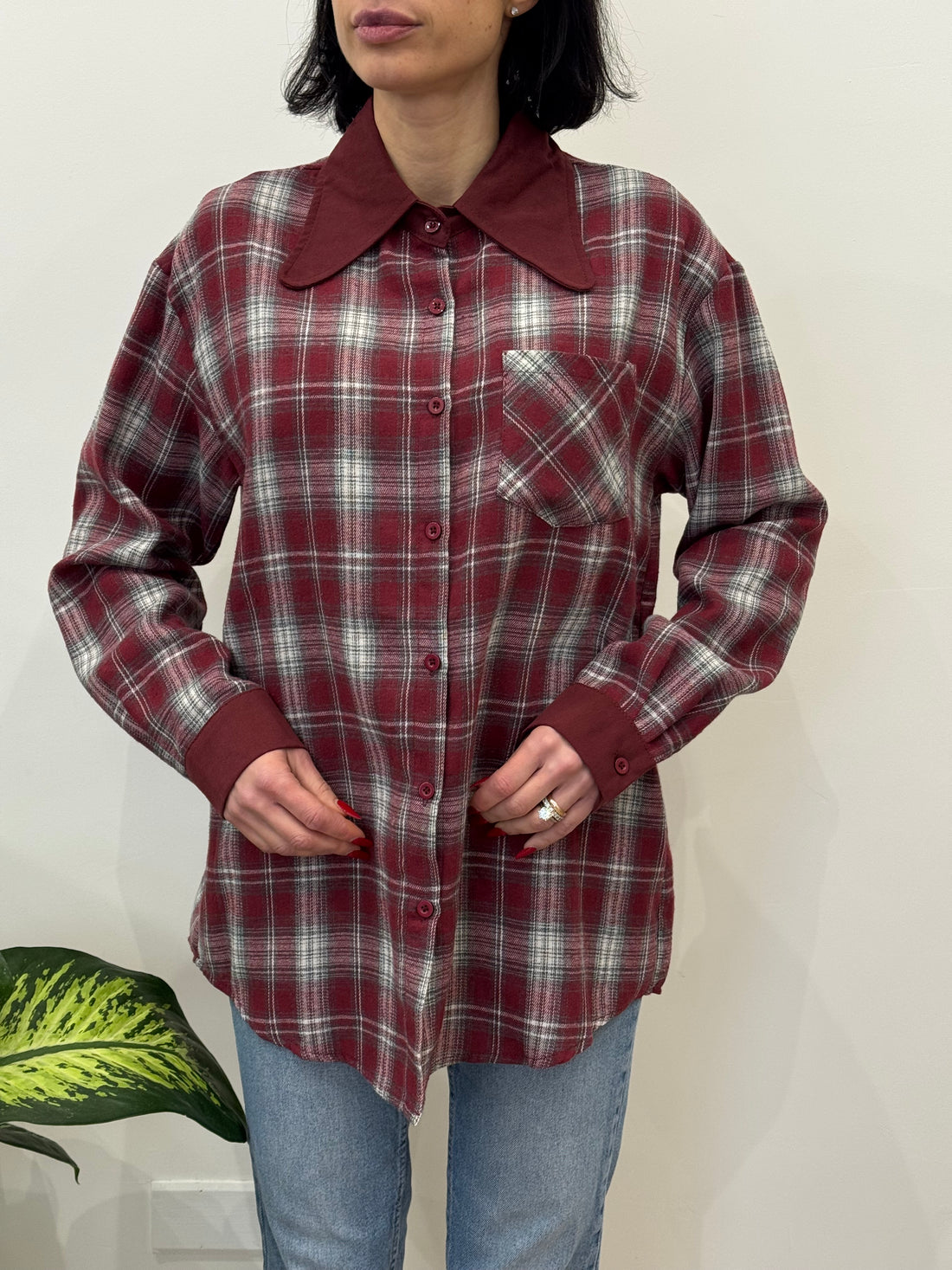 Camicia a quadri con colletto e polsini a contrasto in flanellina.