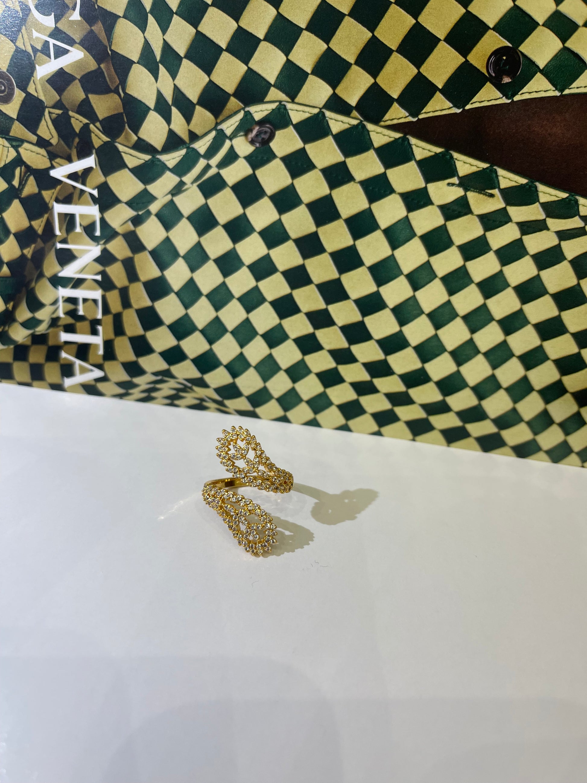 Anello a gocce con swarowski, regolabile. Colore oro.