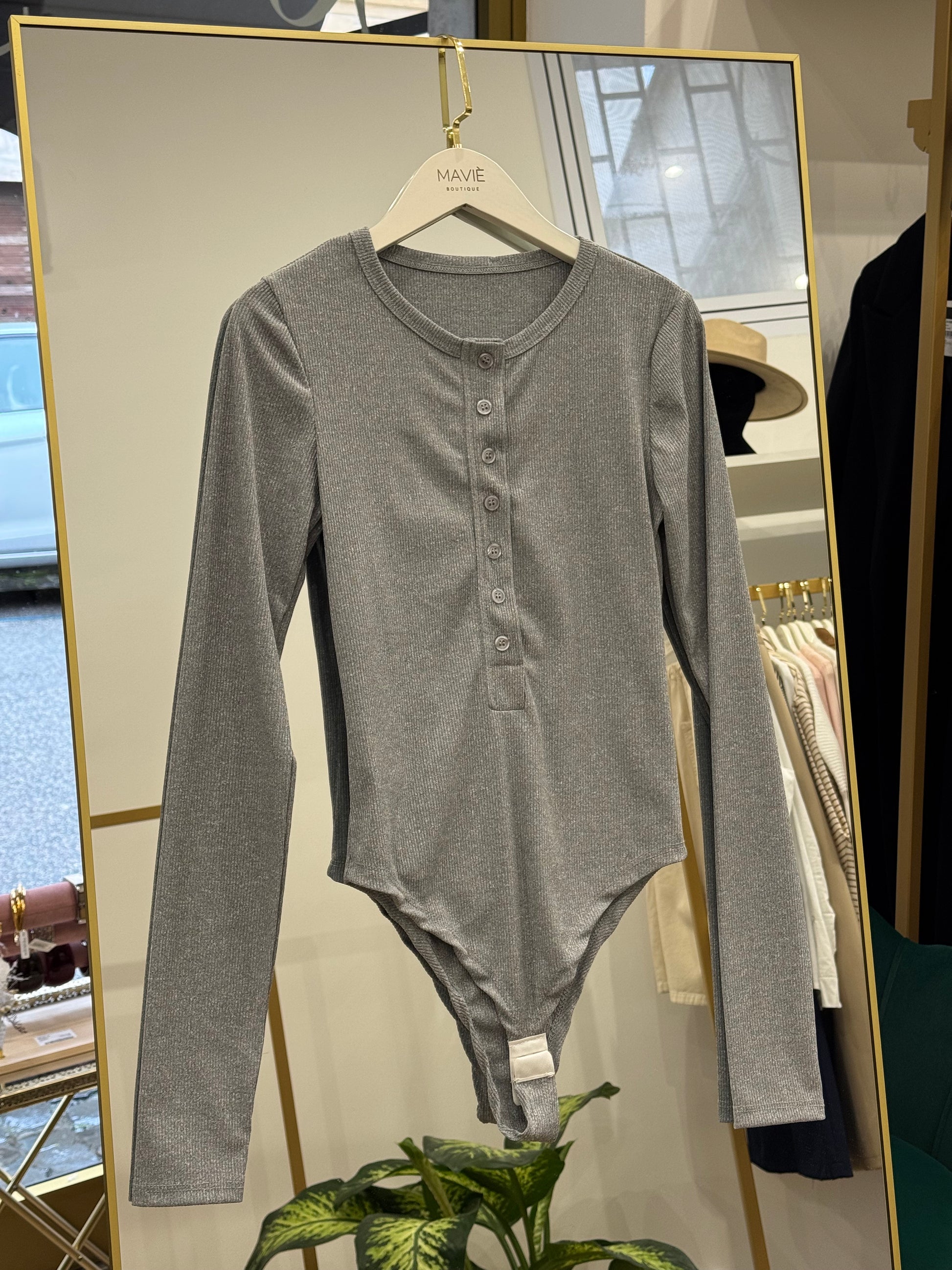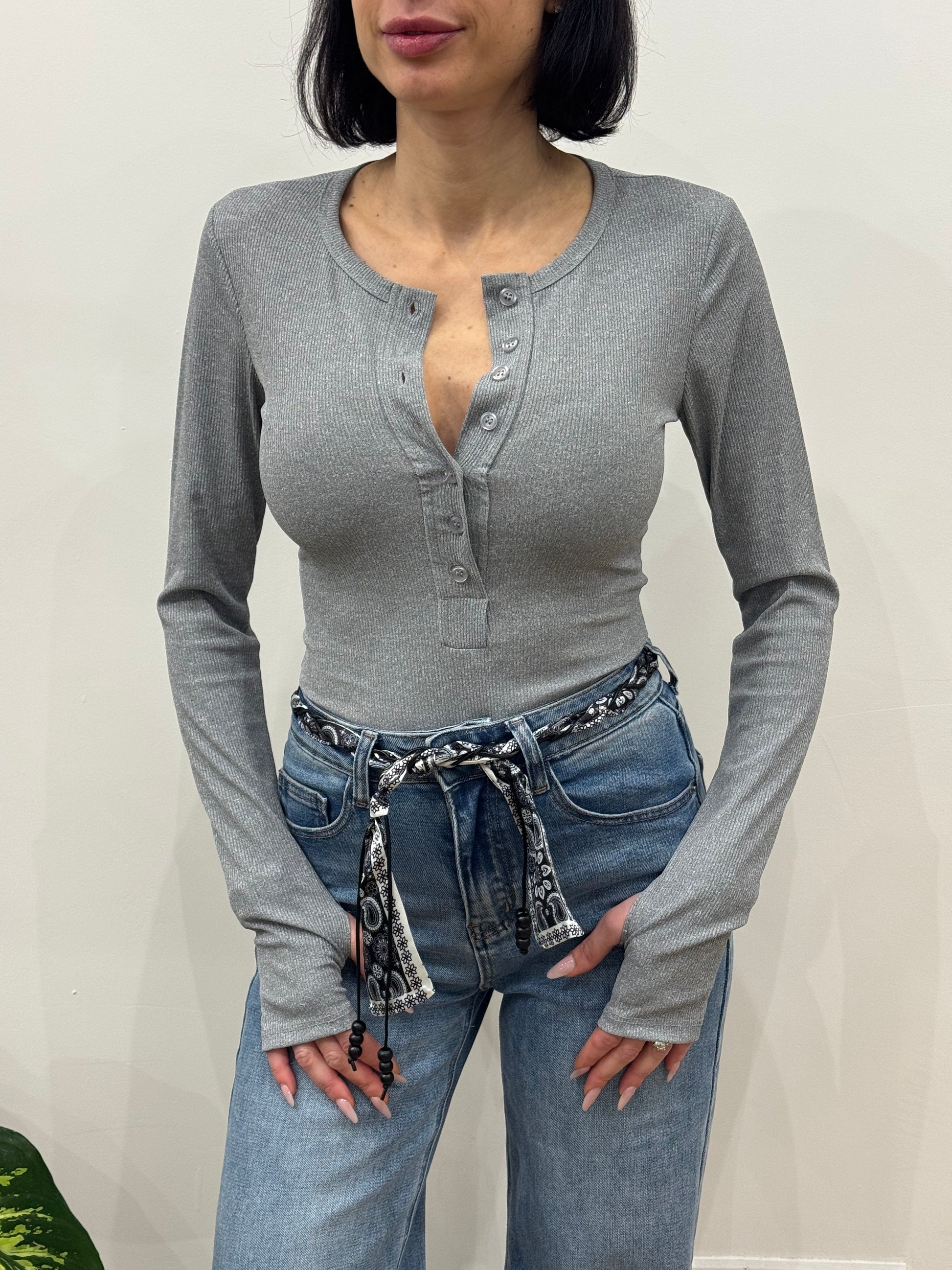 Body con bottoni e manica a guanto.