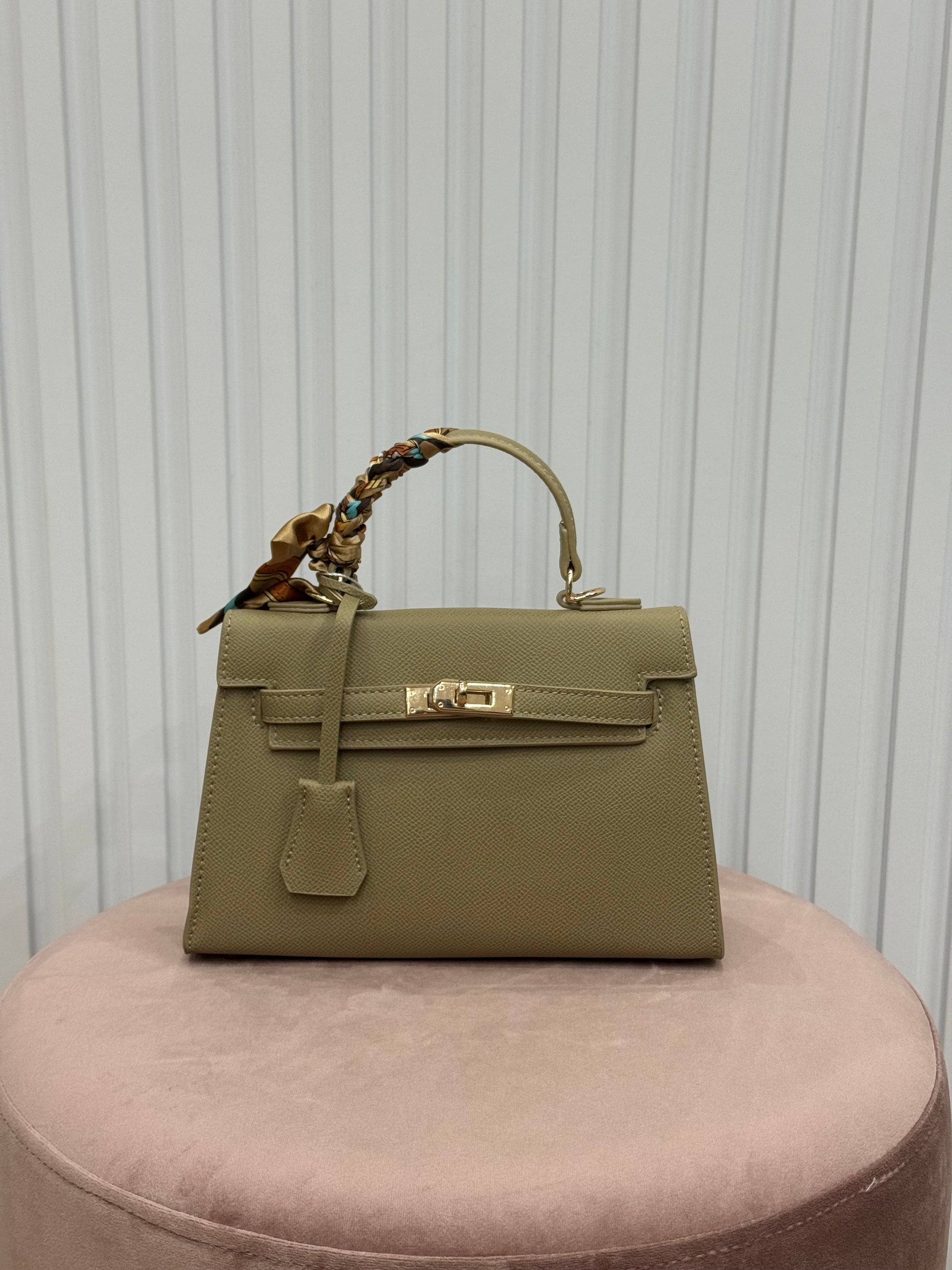 Mini bag modello hermès in ecopelle. Si vende insieme al foulard.