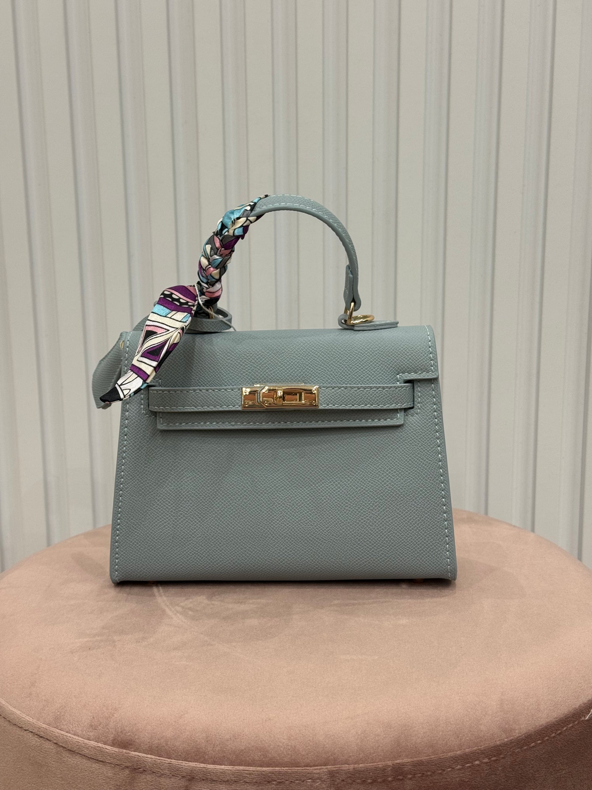 Mini bag modello hermès in ecopelle. Si vende insieme al foulard. Tracolla inclusa