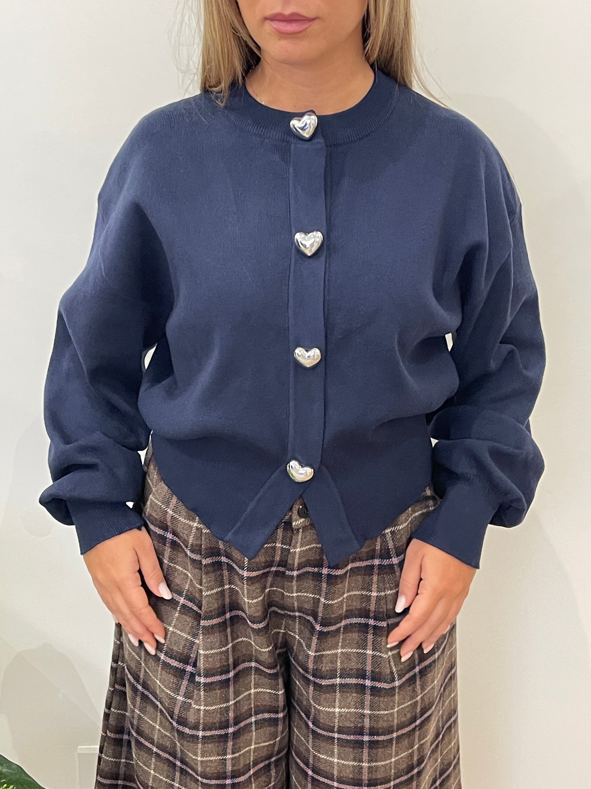 Cardigan con dettaglio dei bottoni a cuore in argento. Manica a sbuffo.