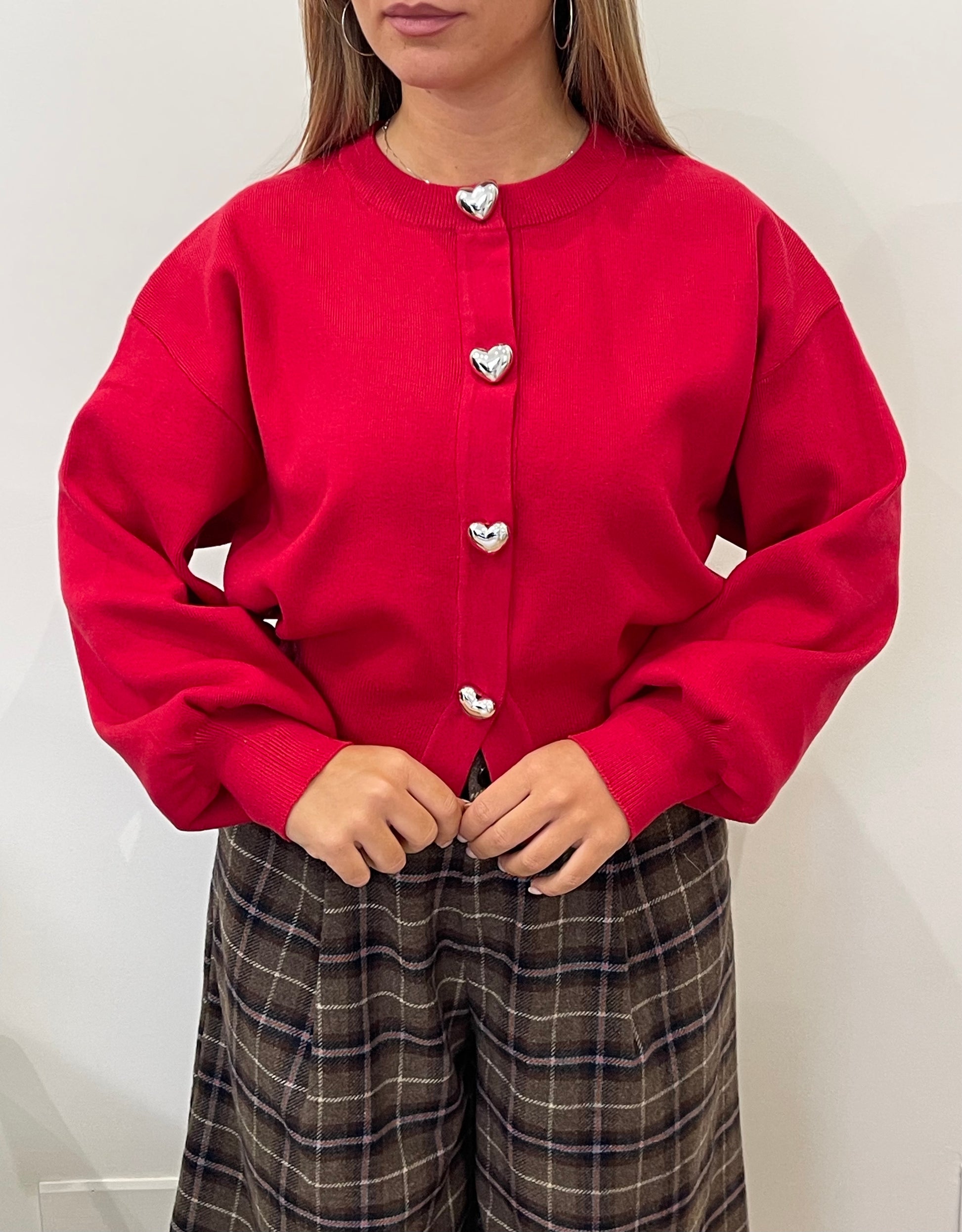 Cardigan con dettaglio dei bottoni a cuore in argento. Manica a sbuffo
