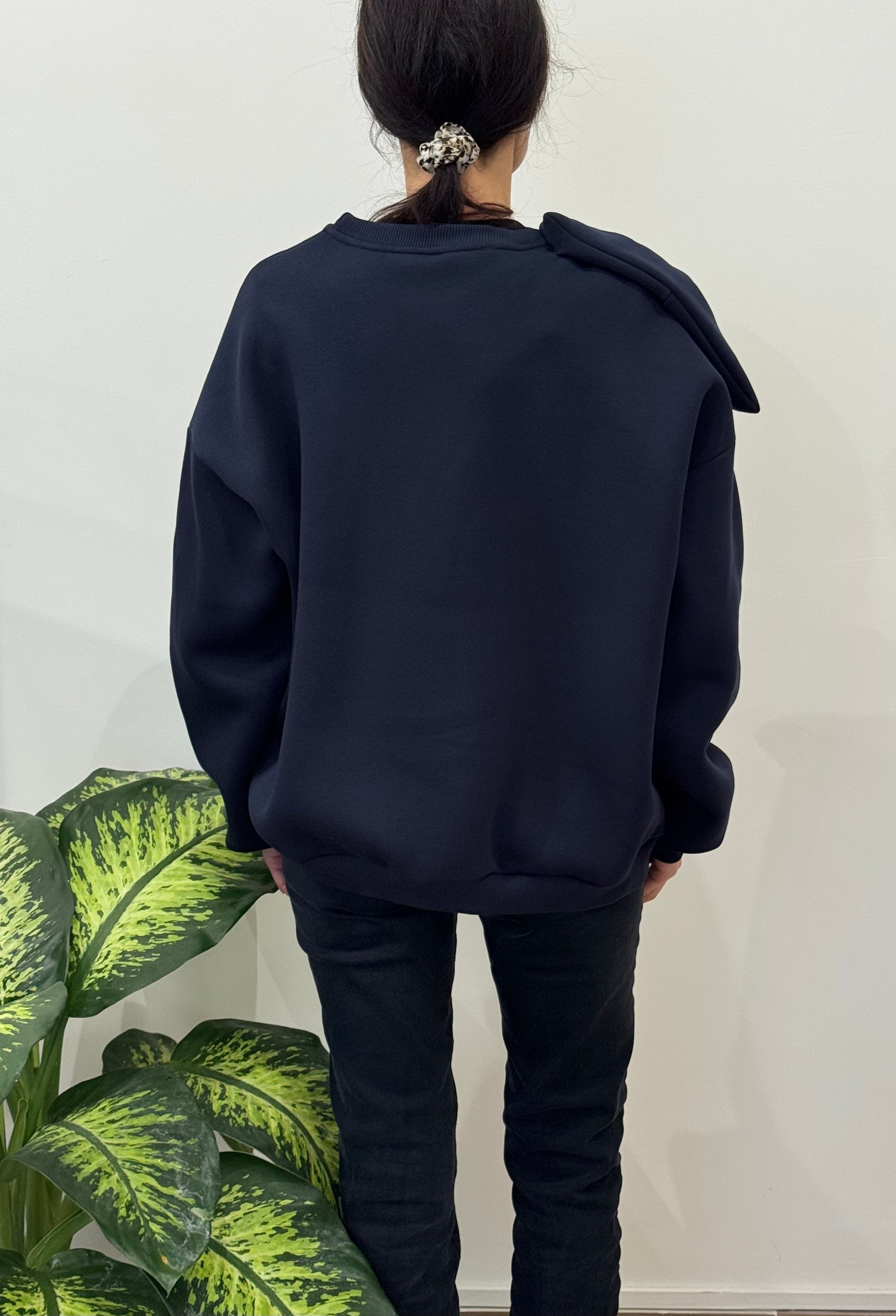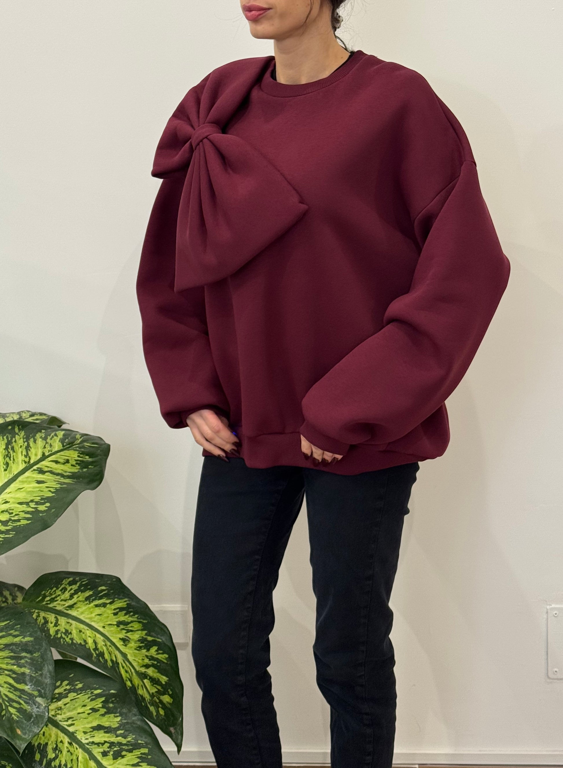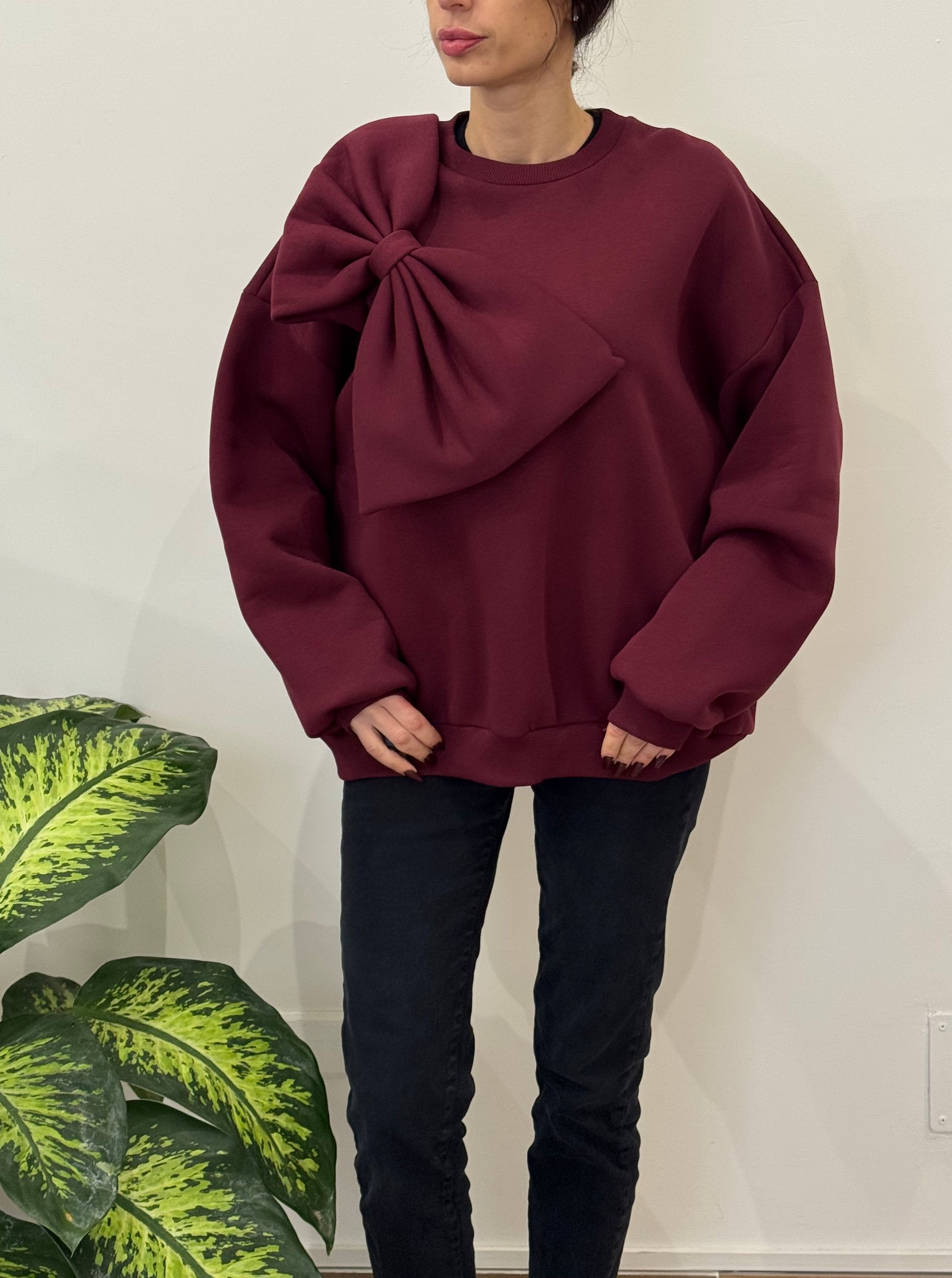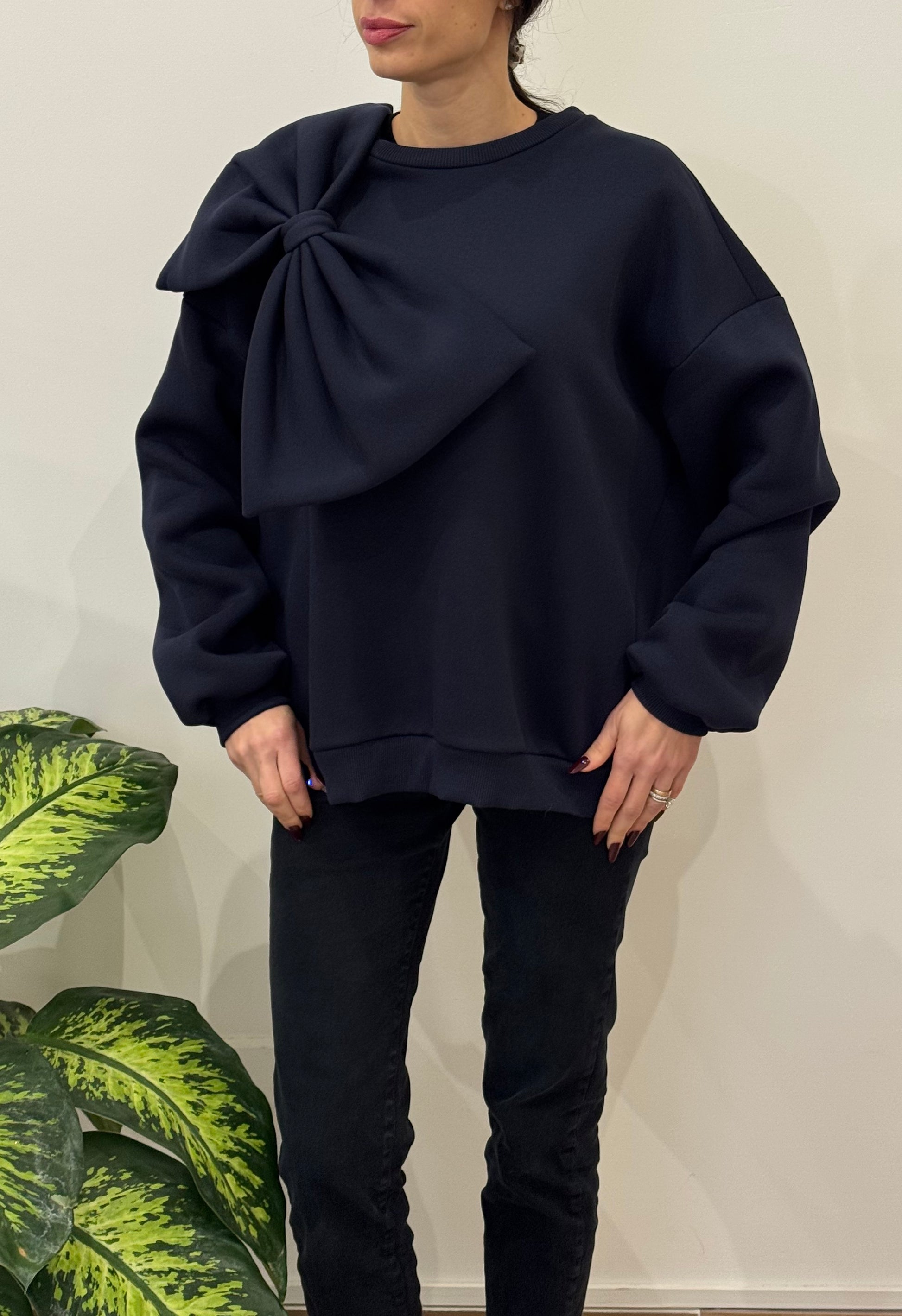 Felpa in caldo tessuto felpato. particolare per il grande fiocco sul davanti