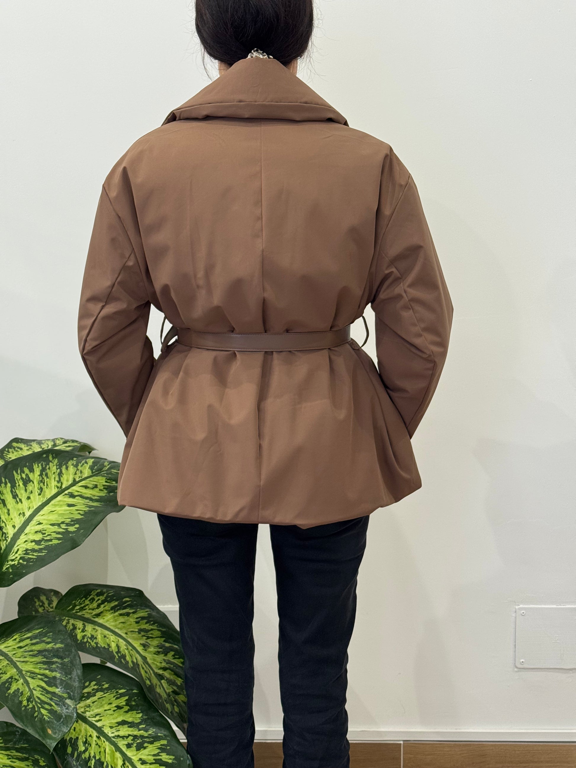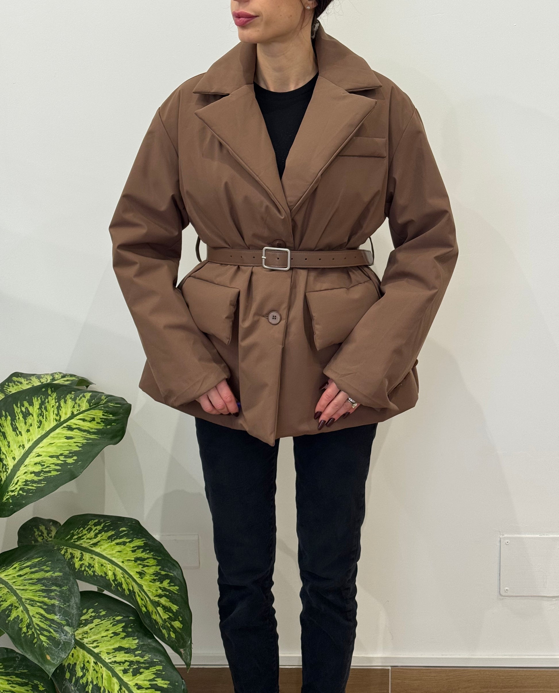 Giubbito imbottito modello blazer con cintura inclusa.