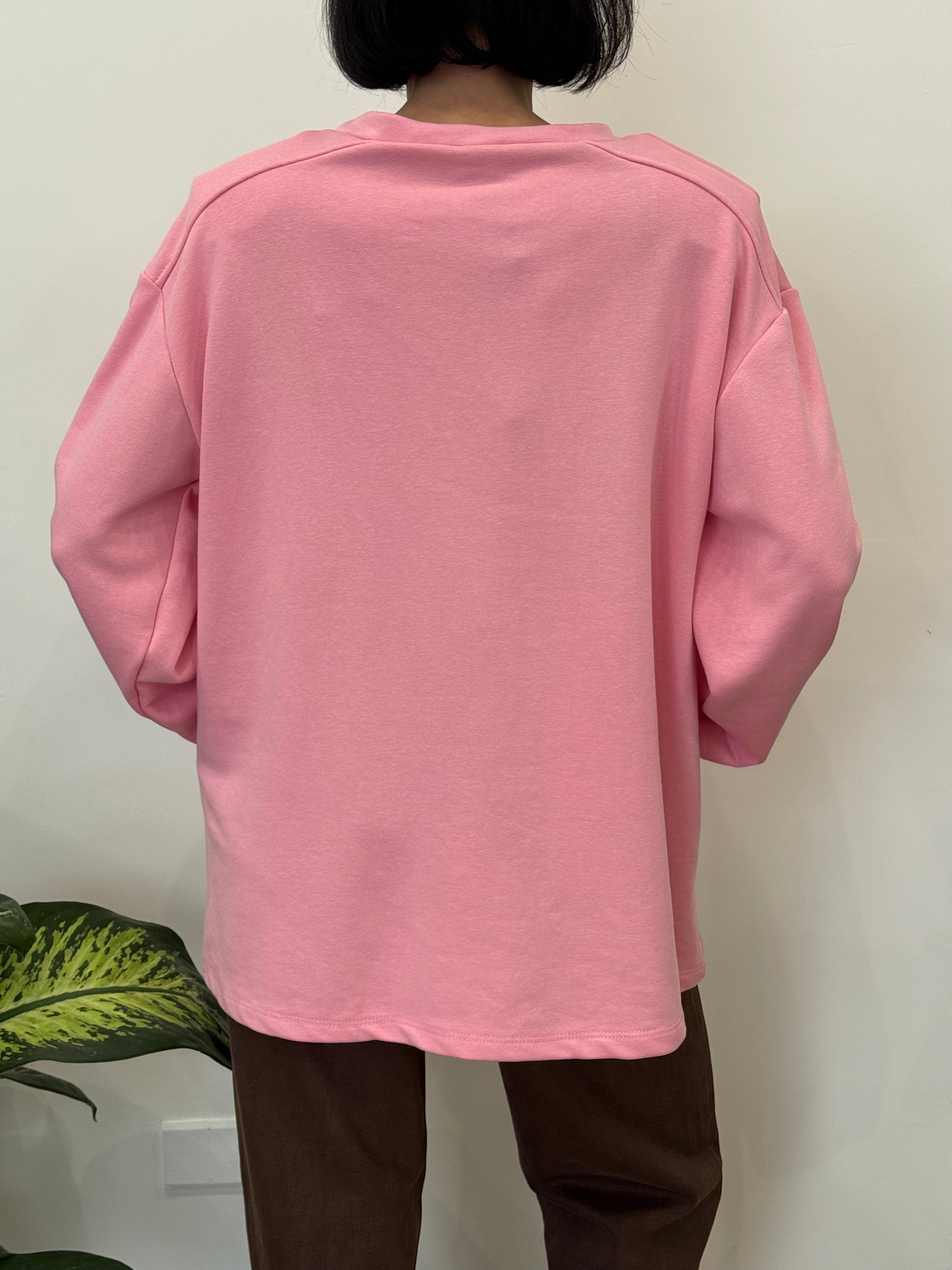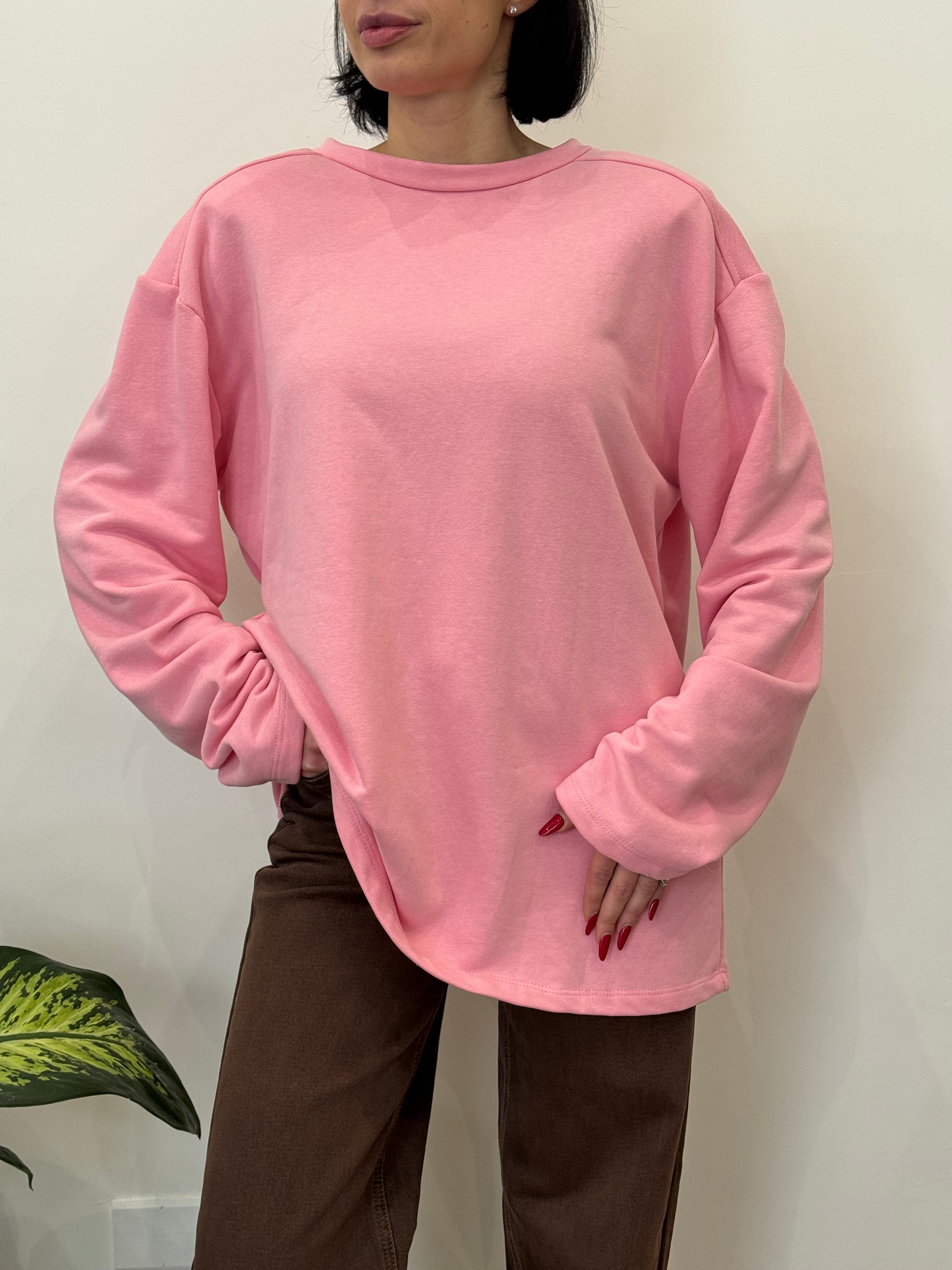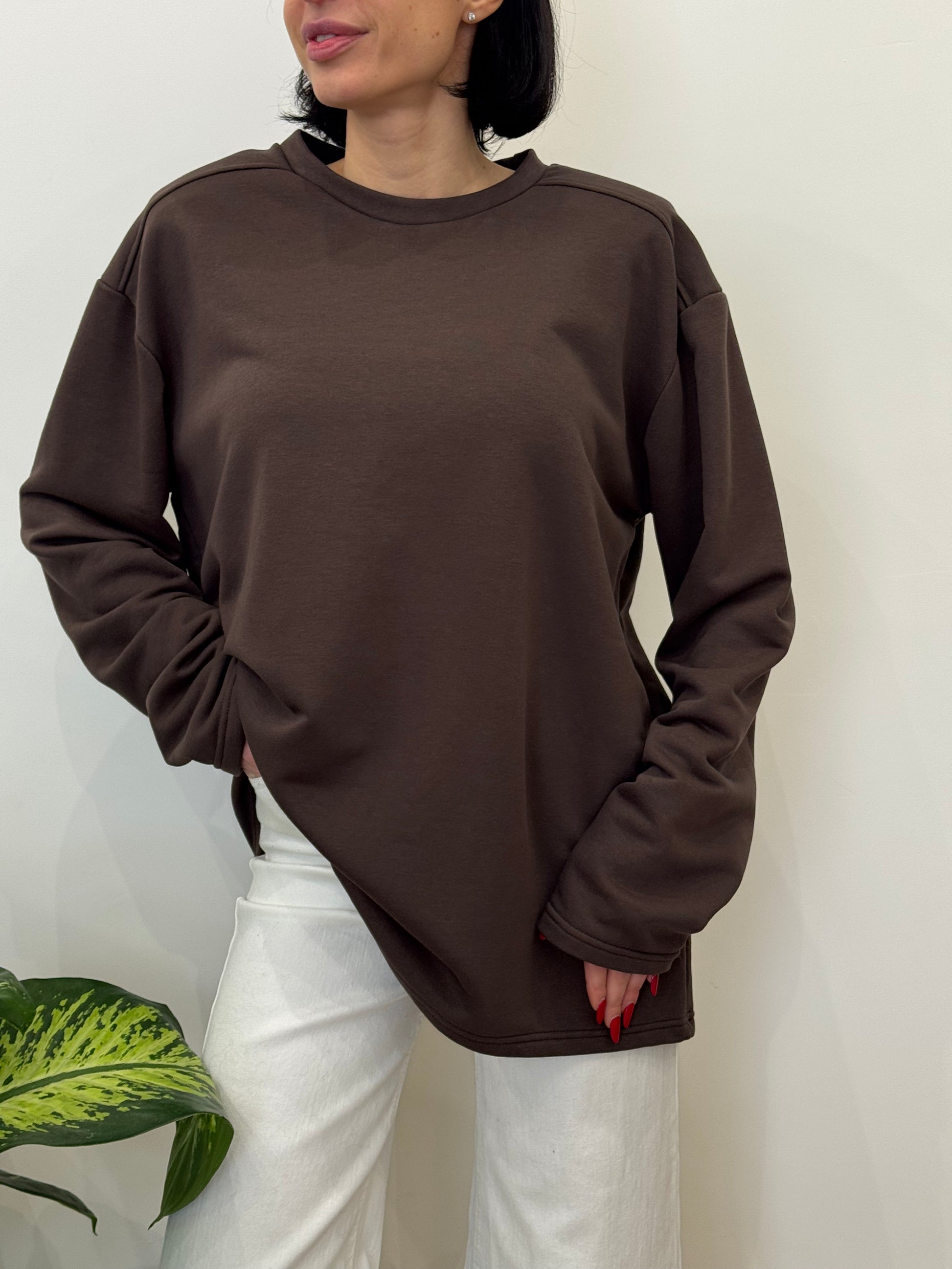 Magliettone longsleeve in tessuto garzato con spallina imbottita. Taglia unica.