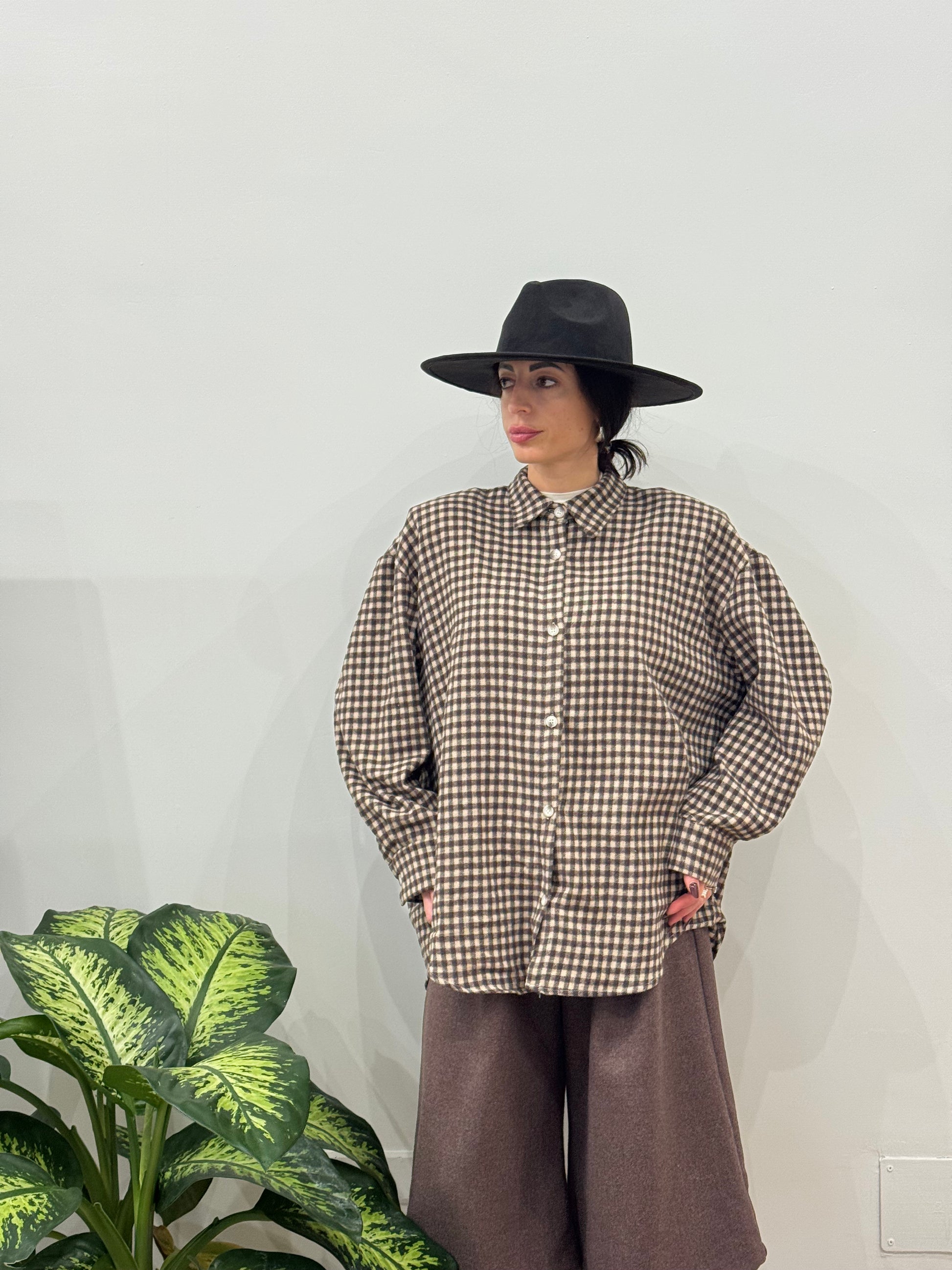 Maxi camicia fantasia a quadretti in flanella con spalline imbottite. Taglia unica