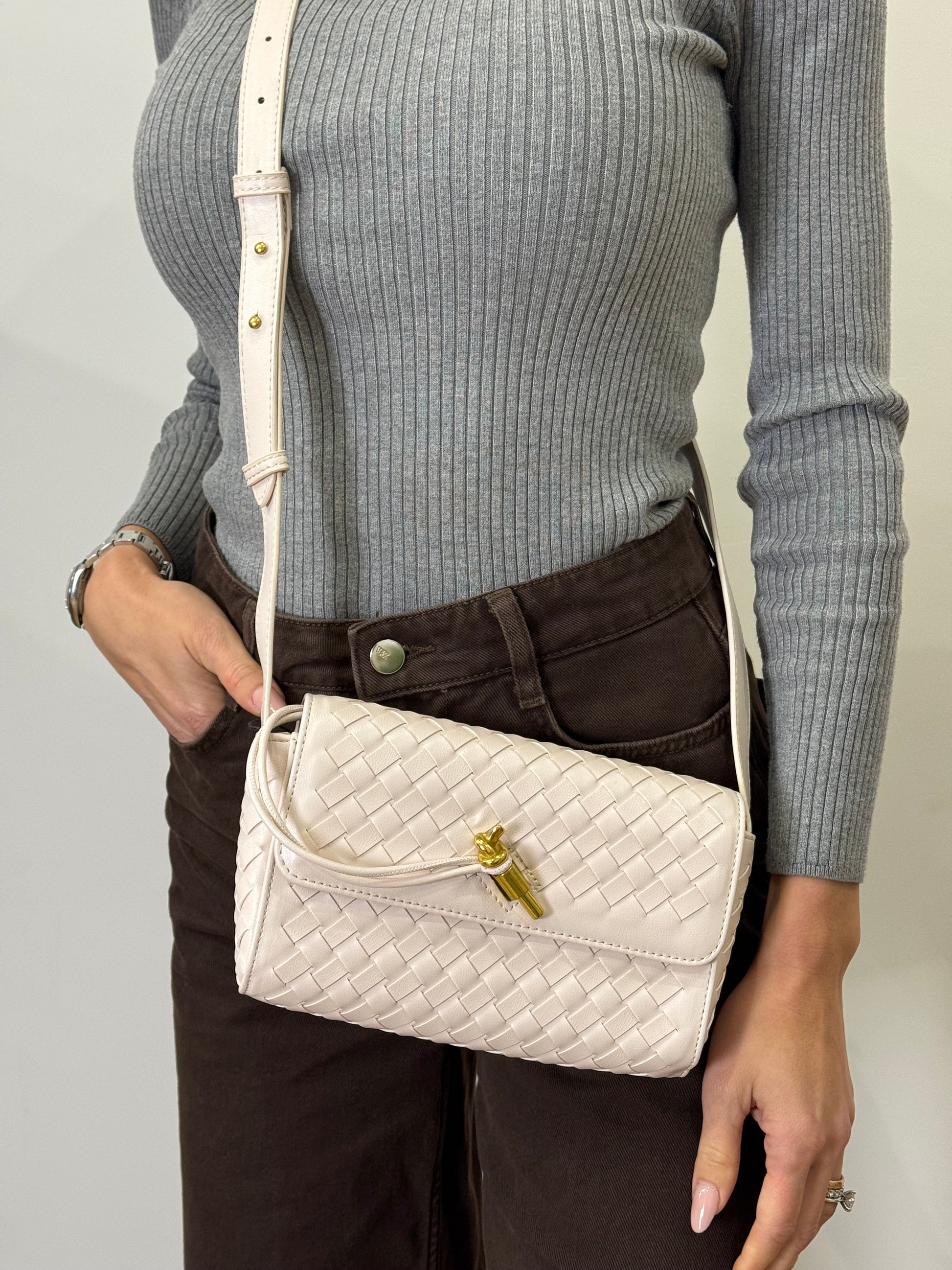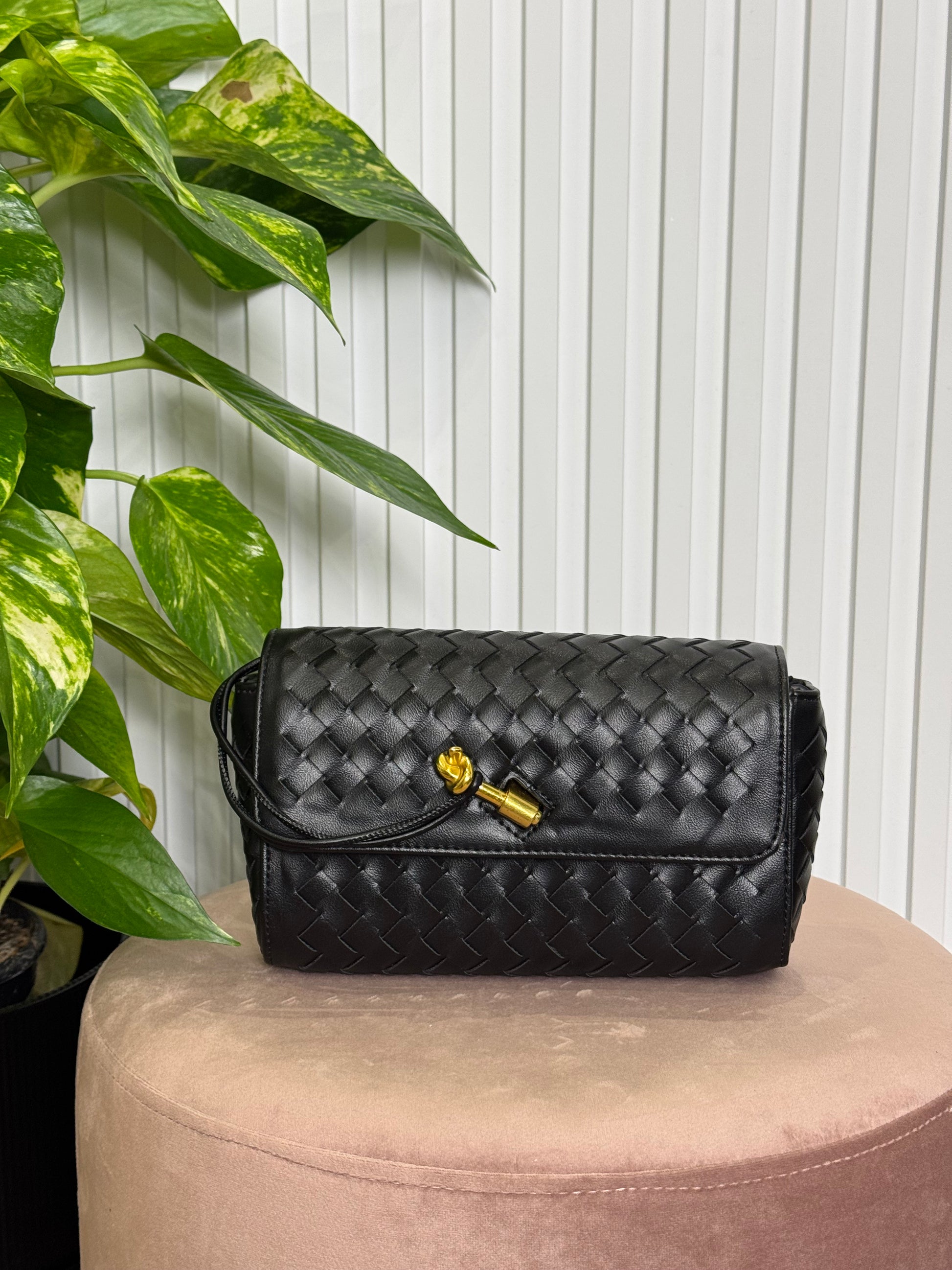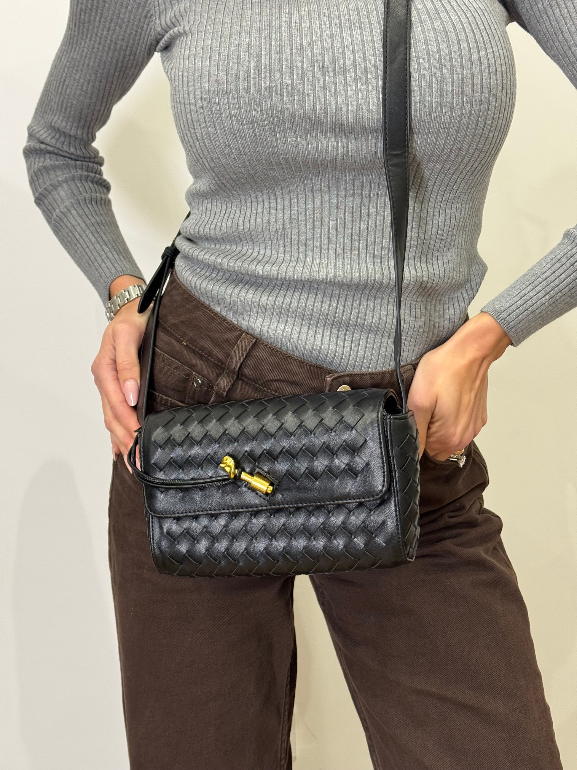 Pochette modello Bottega con intreccio. Anche tracolla.