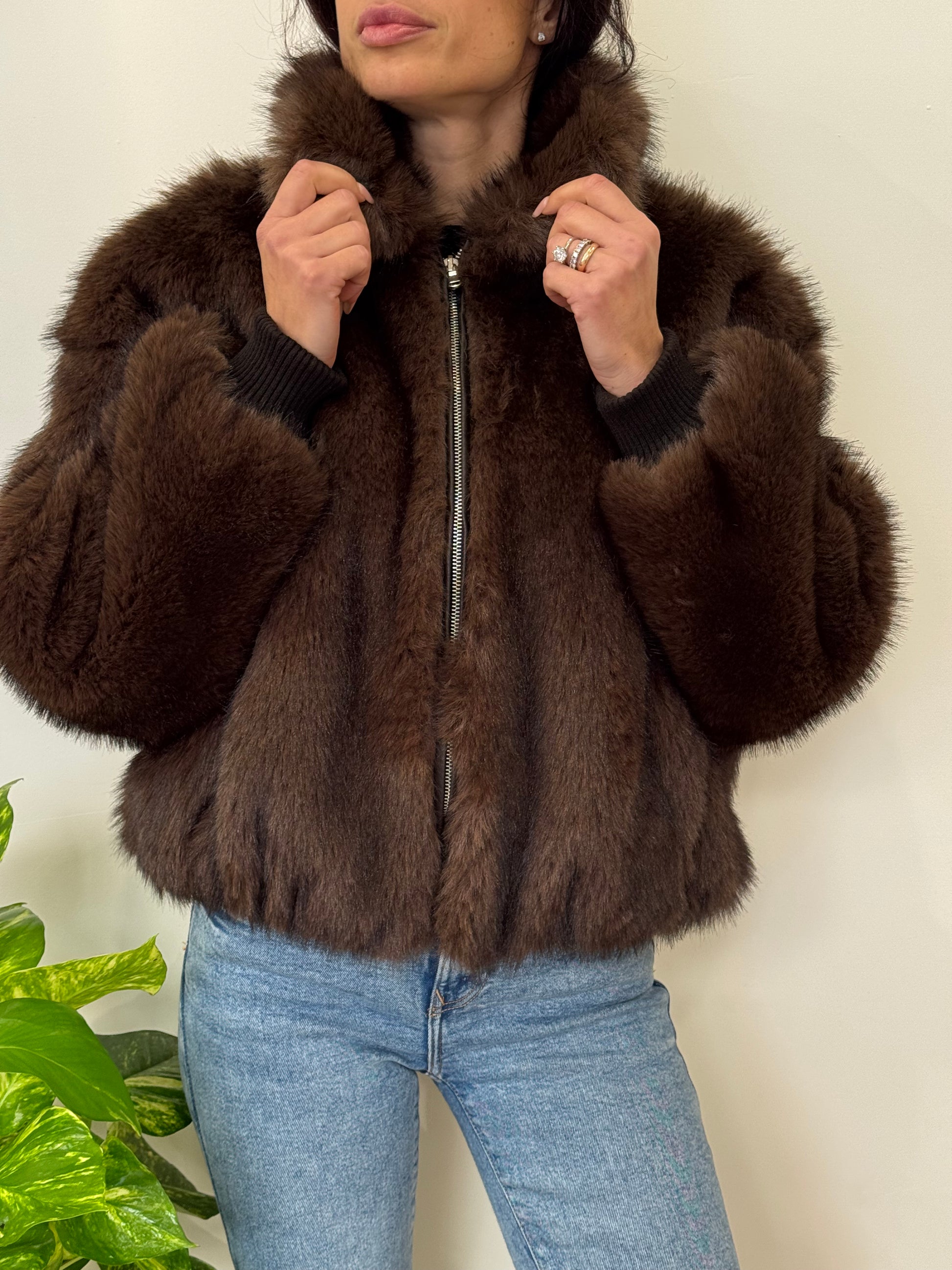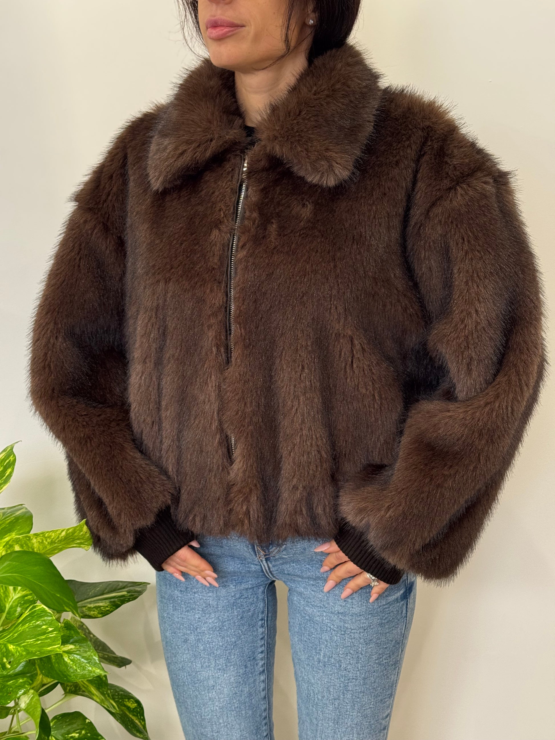 Pelliccia by Lumina con chiusura a zip. Ha l'elastico sui polsi